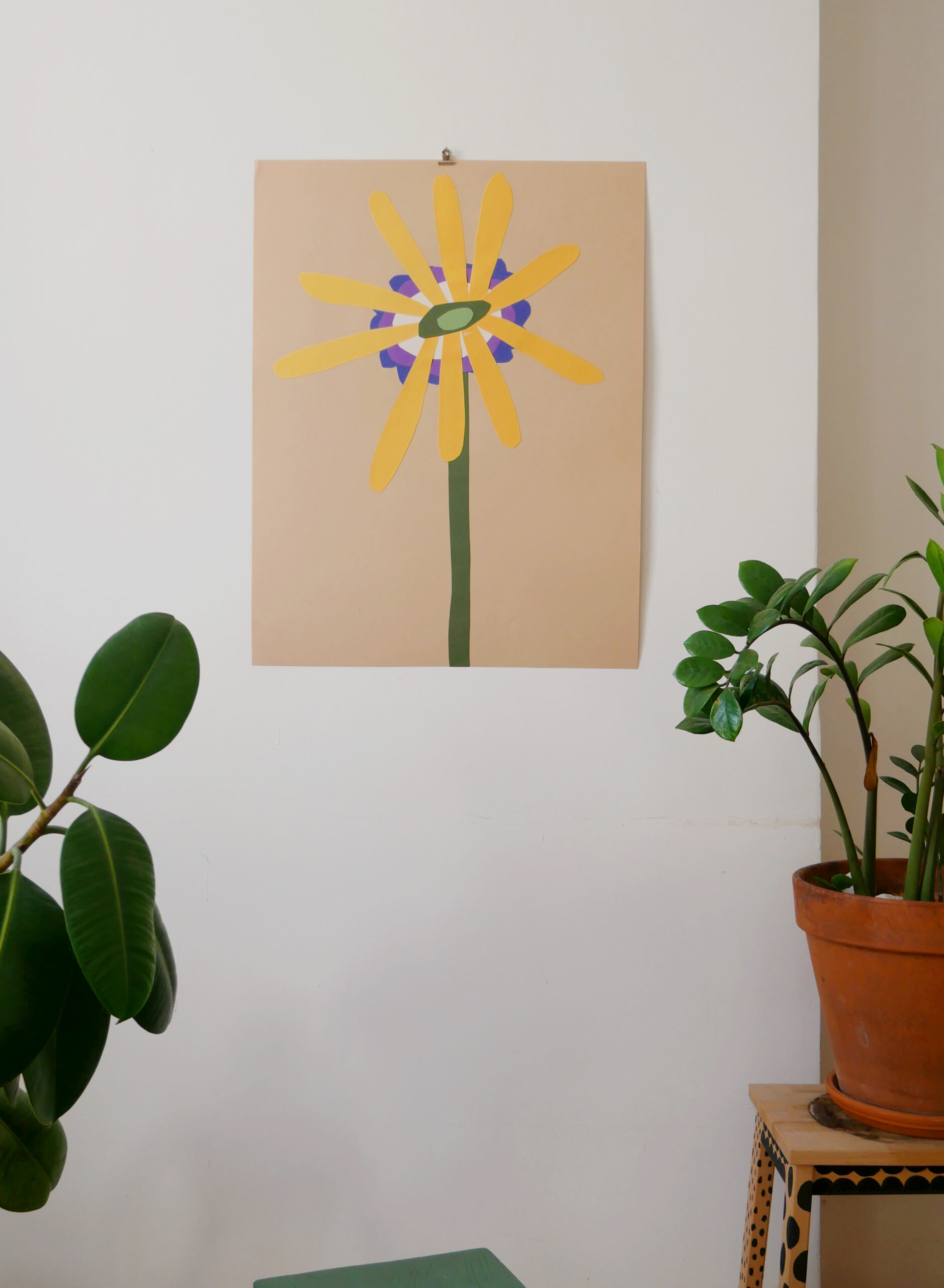 Fleurs en papier découpé et imprimées en sérigraphie , fabriquées à Marseille.