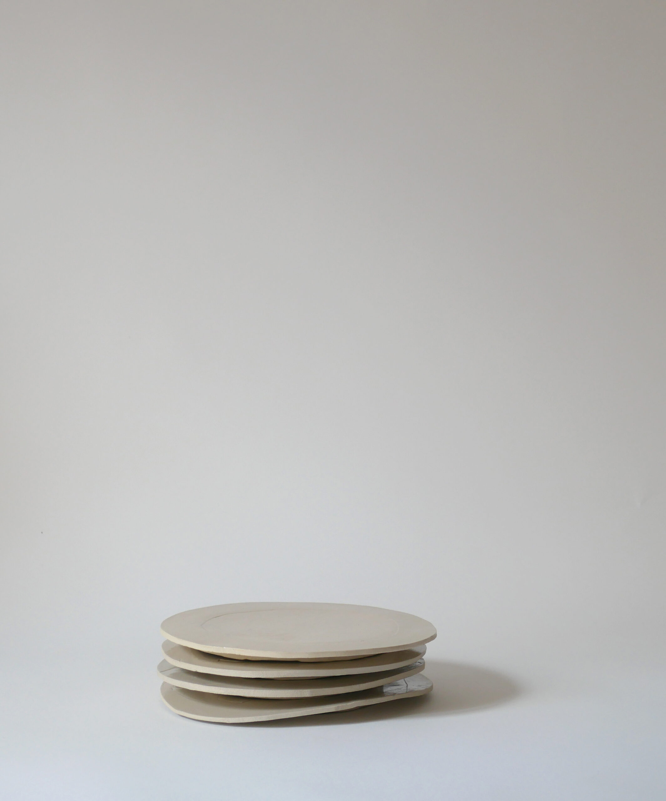 Assiettes plates en grès , fabriquées et décorées à Marseille.