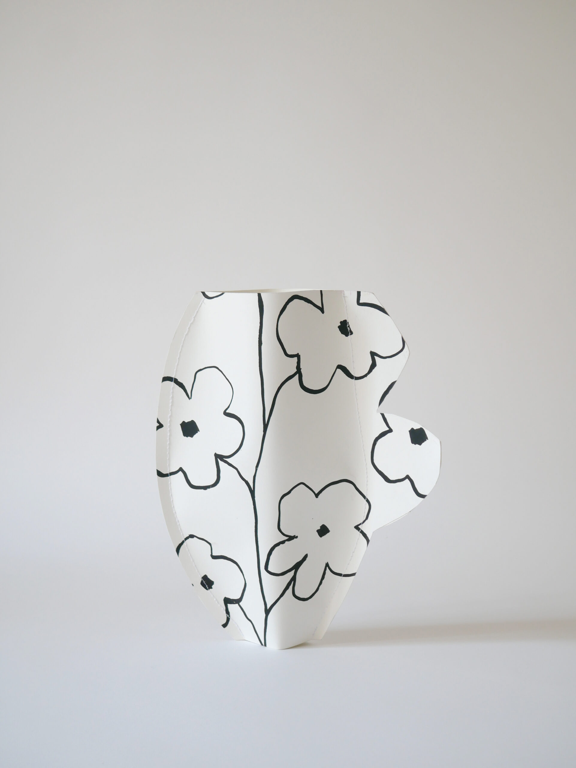 Vase en papier imprimé en sérigraphie.