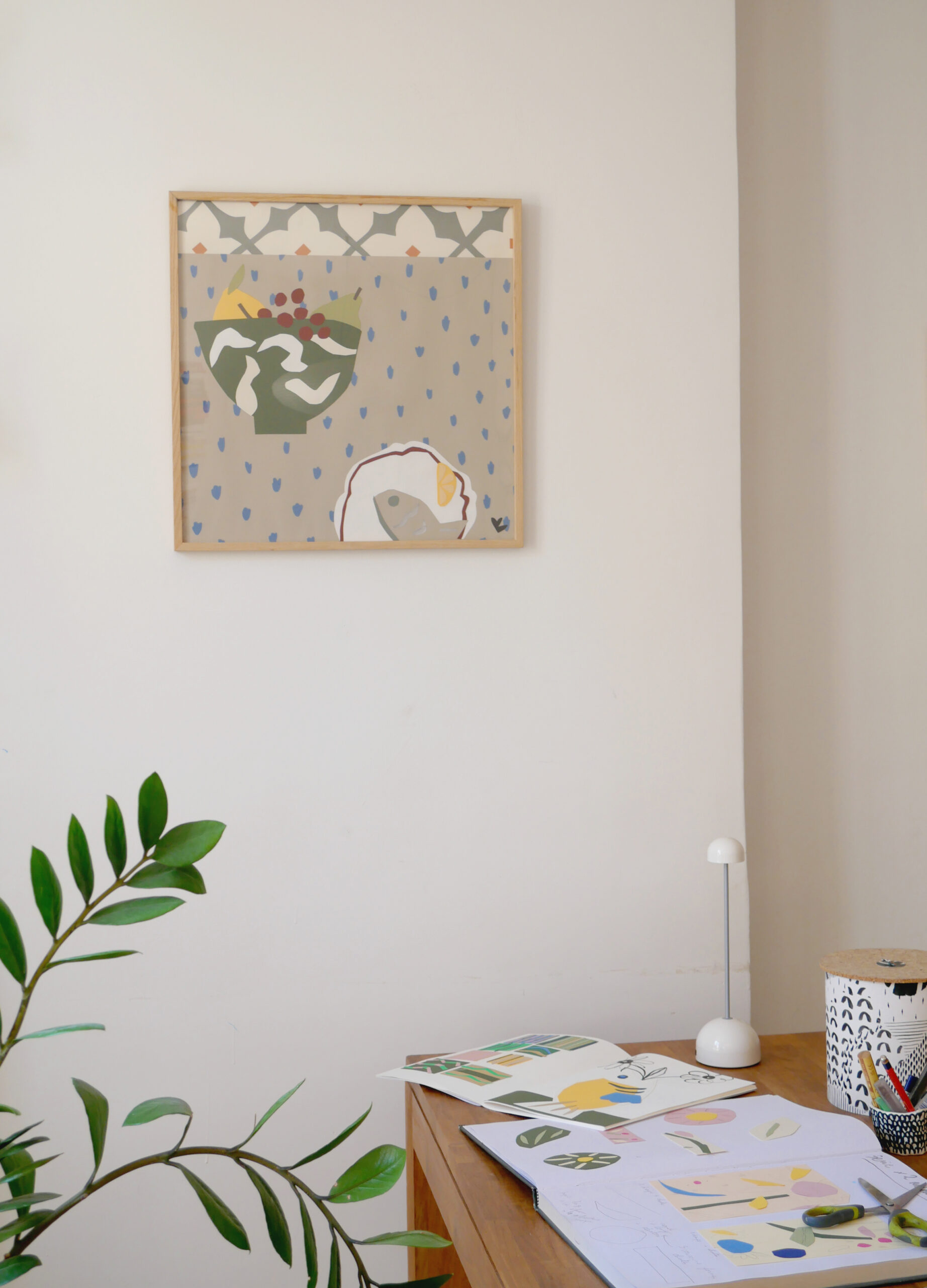 Le solarium est également un lieu de pause, de repos et de plaisir. Il s’agit d’un endroit où l’on prend le temps de se ressourcer et d’observer. Ces collages sont issus d’une série appelée » des morceaux de table », ce sont des plans serrés sur ce que peut être le repos aujourd’hui. Ici « dans la cuisine »